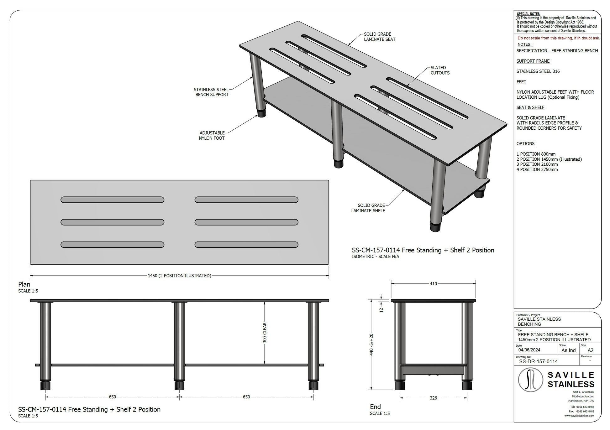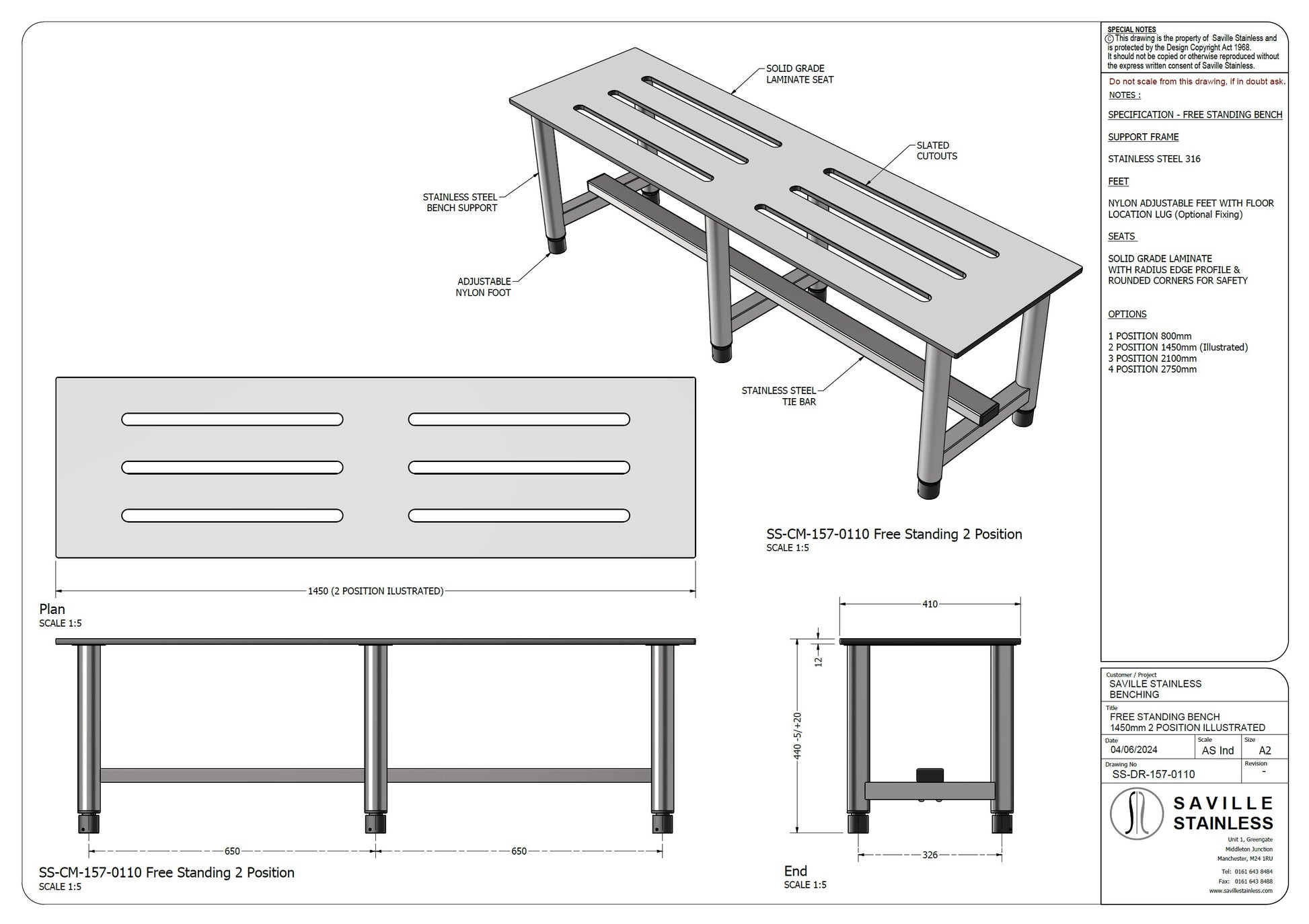 Our premium changing room free standing benches are manufactured from the highest quality 316 grade stainless steel.