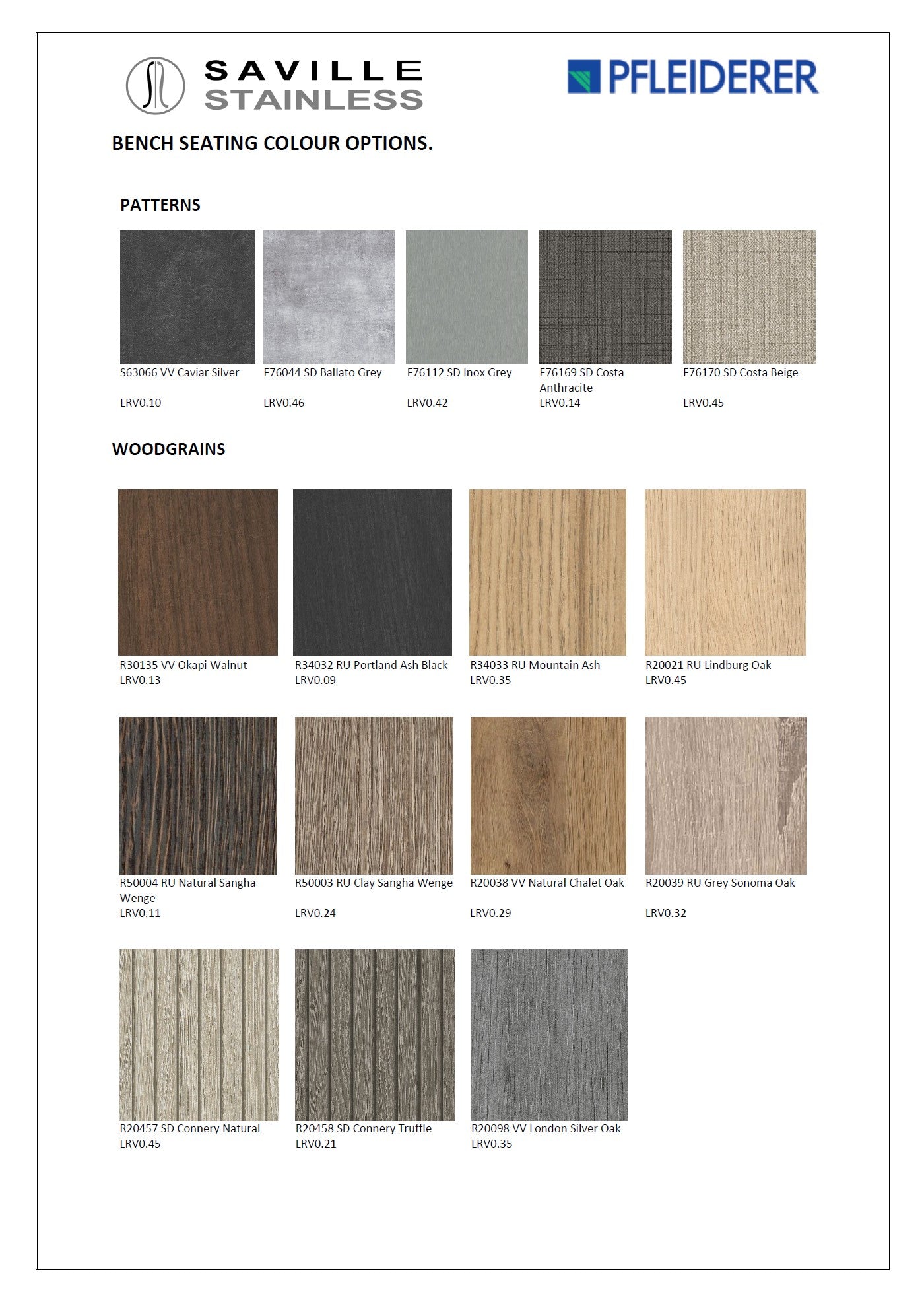- Solid grade laminate seats finished with radius profile edges & rounded corners for safety. Offered with slated cut outs to add to the premium design.