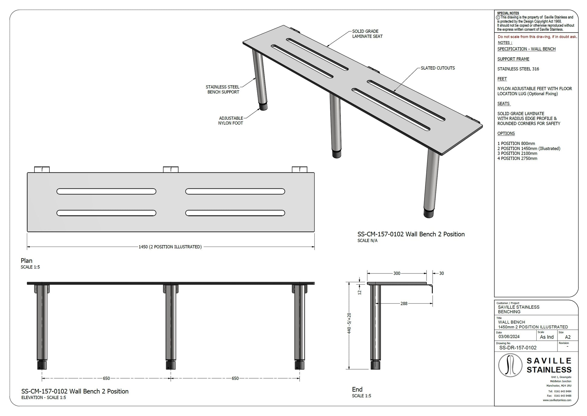 Our premium changing room wall benches are manufactured from the highest quality 316 grade stainless steel.