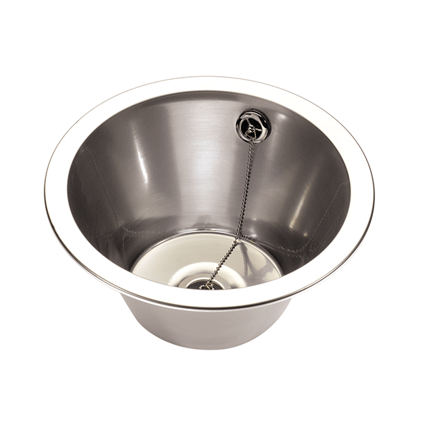 stainless steel inset wash basin without tap holes, 32mm BSP waste/overflow fitting and complete with fixing studs – Taps Not Included
